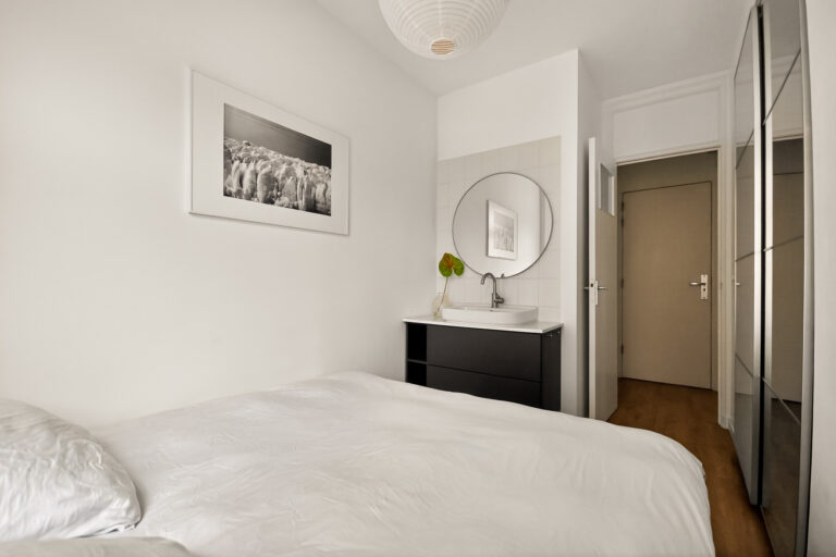 De slaapkamer ligt rustig aan de achterzijde. Een comfortabele plek met ruimte voor een kast en een modern wastafelmeubel. De badkamer is verzorgd en voorzien van douche en toilet.