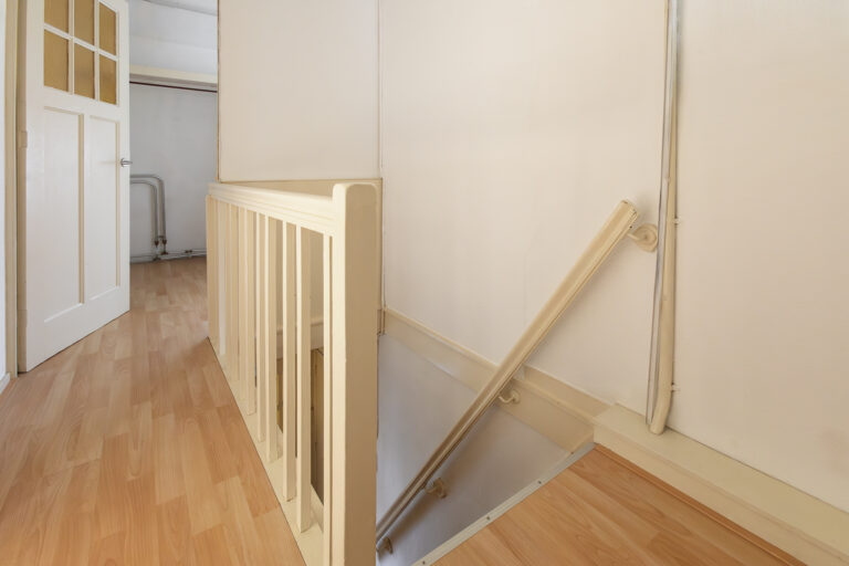 Op de eerste verdieping vind je nu nog 2 slaapkamers. De grootste kamer waren voorheen 2 kamers en is betrekkelijk eenvoudig terug te brengen naar de originele situatie. Dan ontstaan er drie fijne slaapkamers. Alle kamers zijn goed bemeten – ideaal voor gezin, werkplek of logeerfunctie. De badkamer is eenvoudig ingericht en functioneert prima; hier kun je direct in wonen of later upgraden naar jouw stijl. Via de vlizo trap kom je op de zolderverdieping, die met een dakvenster verrijkt kan worden voor extra gebruiksruimte.