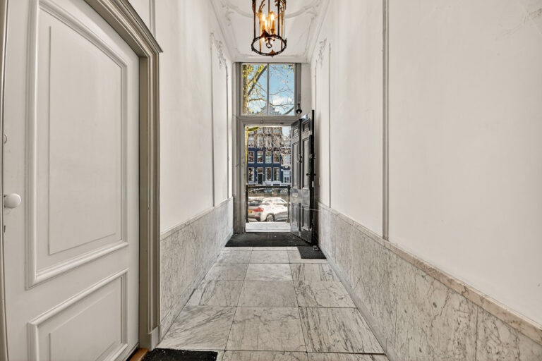 Het pand ademt historie met zijn marmeren hallen, originele trappenhuizen en monumentale details die zo kenmerkend zijn voor grachtenpanden van dit kaliber. De fundering is vernieuwd in 1998 en het gebouw is in 2011 gesplitst in appartementsrechten – een solide basis voor een hoogwaardige renovatie.