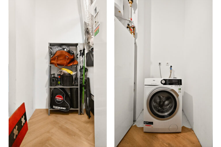 In de inpandige berging staat de warmtepomp, mechanische ventilatie-box en is er aansluiting voor de wasmachine maar daarnaast is nog genoeg ruimte voor koffers, ski’s, tentspullen etc.