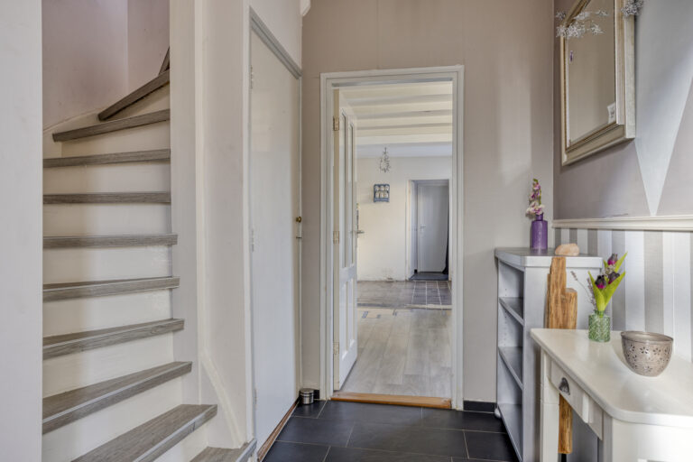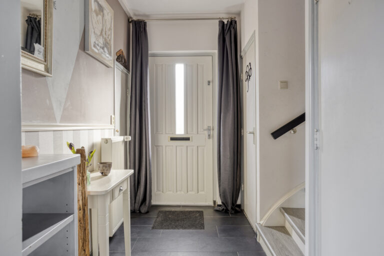 Bij binnenkomst valt direct de prettige indeling op. De hoofdentree aan de voorzijde biedt toegang tot de meterkast, het toilet, de trapkast en de eerste verdieping. De woonkamer bezit grote raampartijen die zorgen voor een overvloed aan daglicht en zicht op de diepe achtertuin.