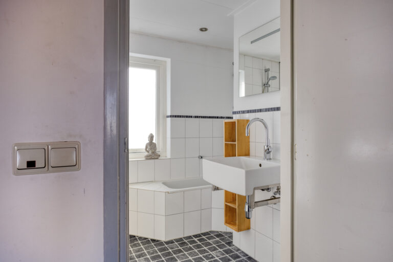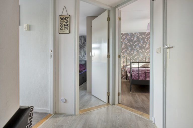 Op de eerste verdieping bevinden zich drie ruime slaapkamers, licht en prettig van formaat. De badkamer is uitgerust met een douche, wastafel en een ligbad. Via de overloop is er toegang tot de bergzolder middels een vlizotrap — perfect voor extra opbergruimte.