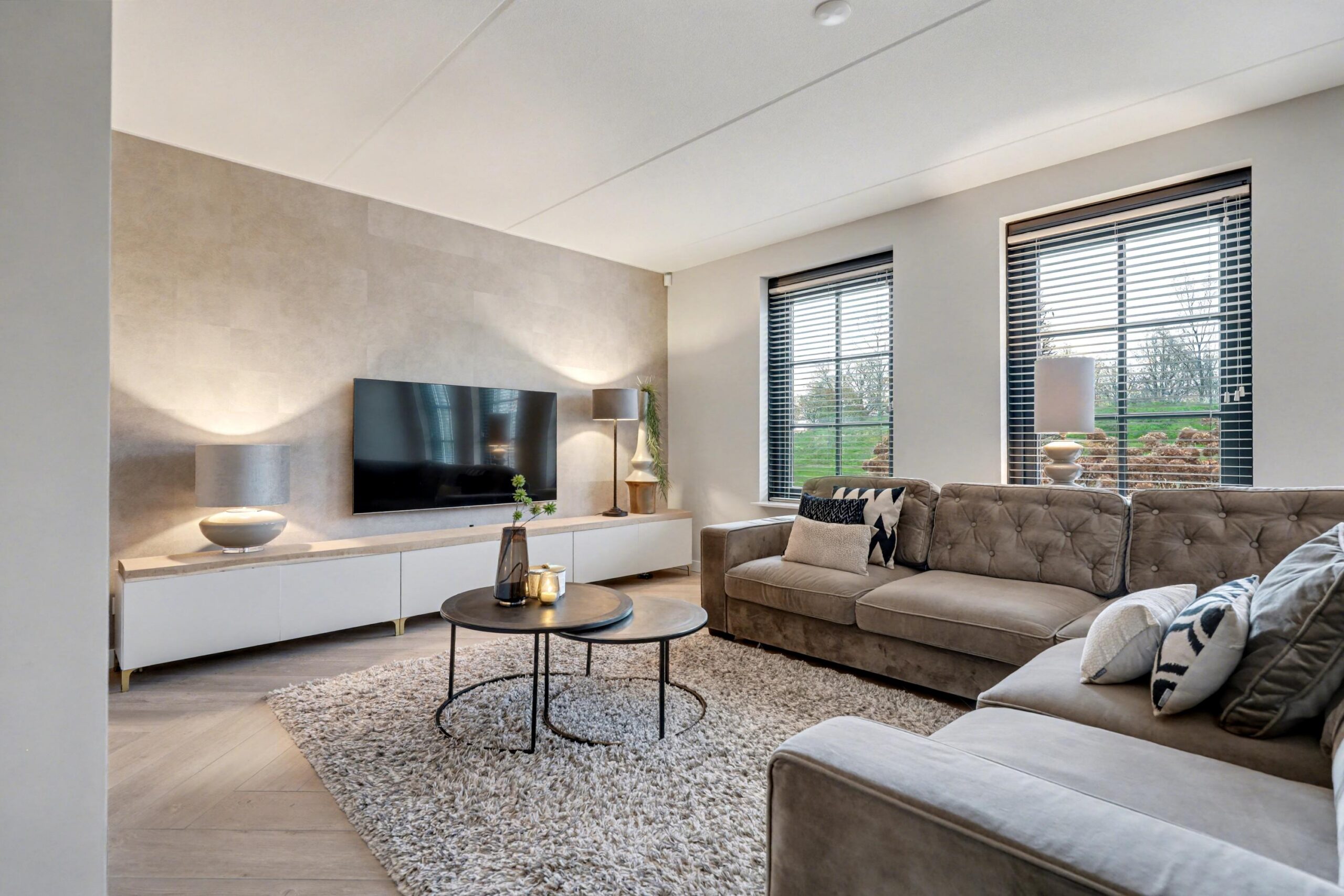 • Ruime, lichte woonkamer met grote raampartijen;