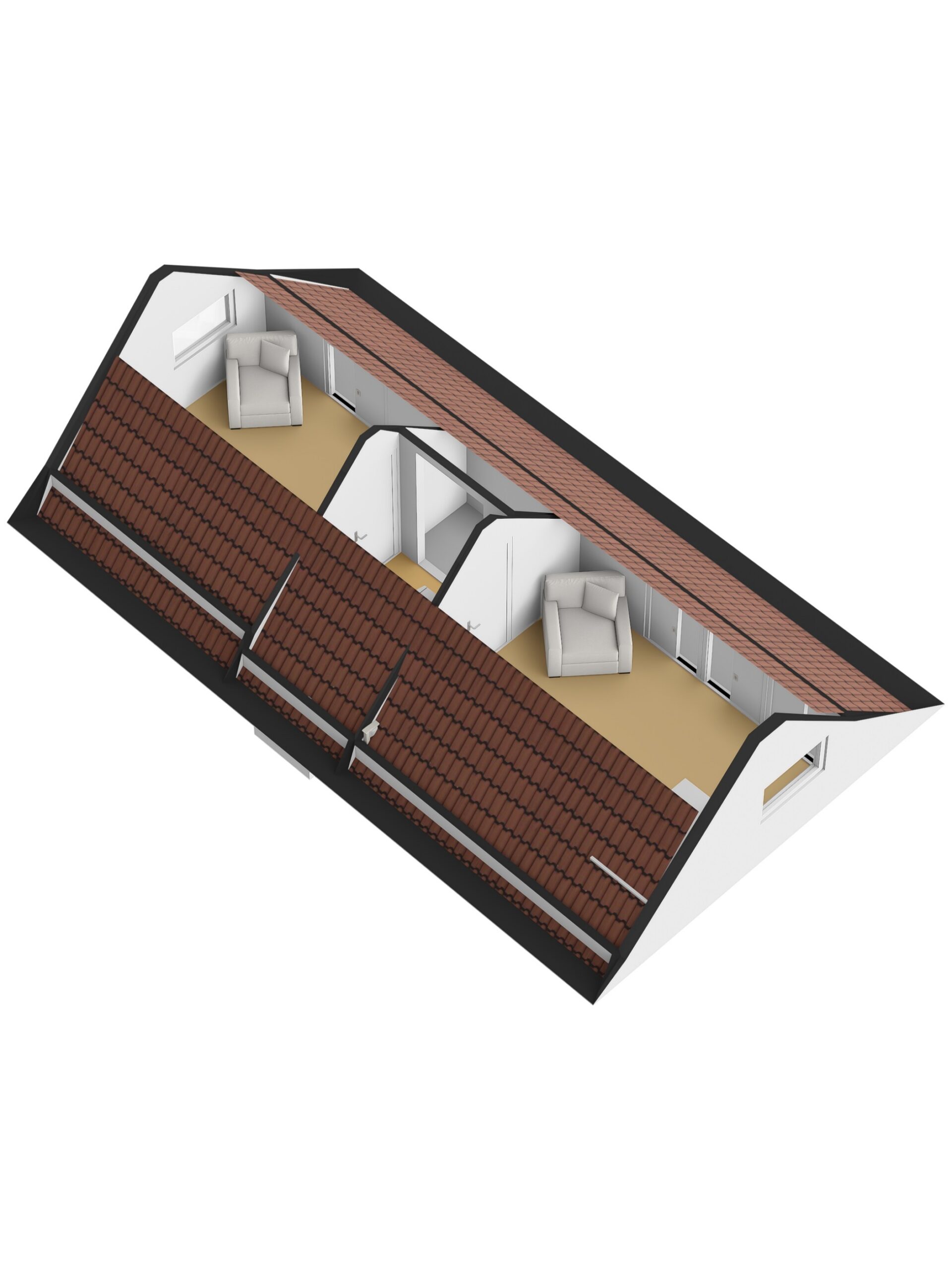 Via een vaste trap bereik je de tweede verdieping, waar zich nog twee slaapkamers bevinden. Op de voorzolder is ruimte voor het opslaan van spullen en hier is tevens de cv-ketel opgesteld.