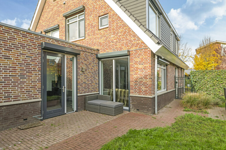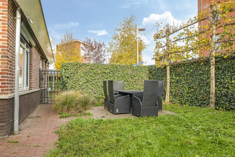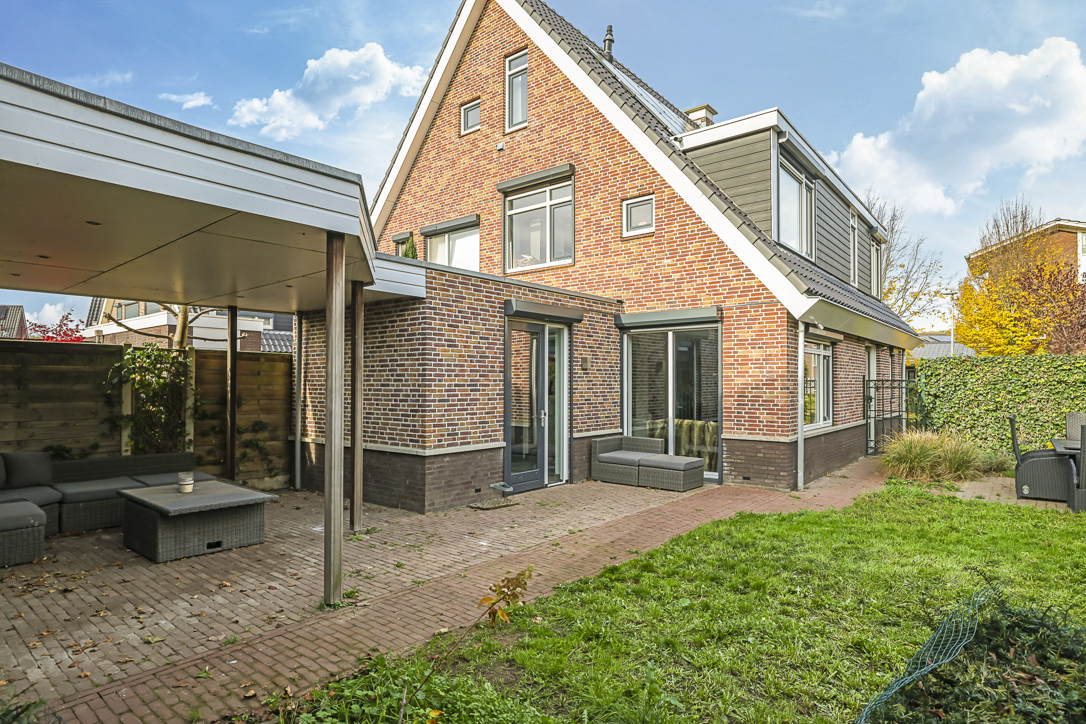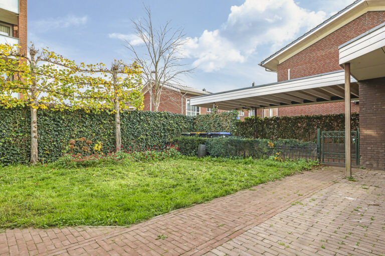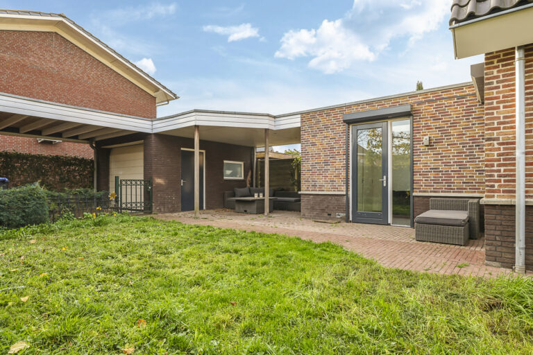De achtertuin is verzorgd aangelegd, volledig omsloten en ligt ideaal op het zuiden. Er zijn meerdere terrassen, zodat je altijd een plekje in de zon of schaduw kunt vinden. Onder de overkapping is het heerlijk vertoeven, ook op zomerse avonden. De vrijstaande stenen garage heeft een elektrische roldeur en volop bergruimte. De oprit met carport (voorzien van nieuwe dakbedekking) biedt de mogelijkheid om een auto op eigen terrein te parkeren.