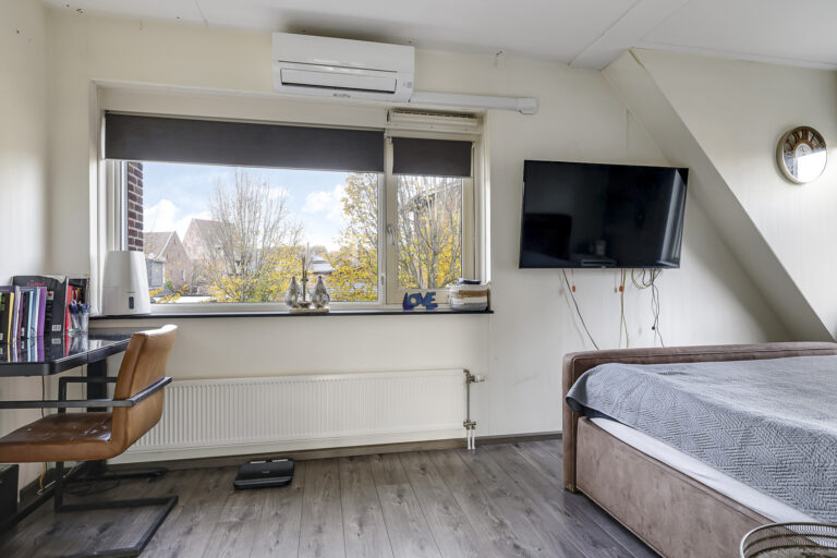 Via een vaste trap bereikbaar, met keurige laminaatvloer, aansluiting voor wasmachine en droger, cv-installatie en mechanische ventilatie. Dankzij de twee gevelramen is het een lichte en praktische verdieping – eventueel te gebruiken als werk- of hobbyruimte.