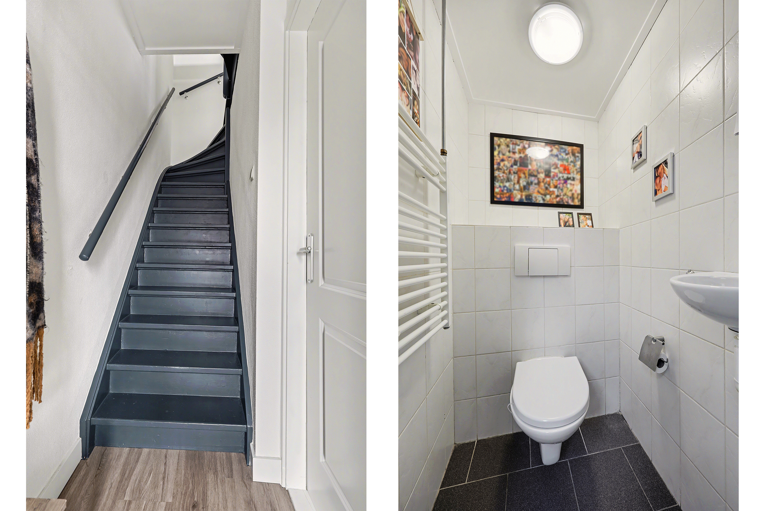 Via de entree kom je in de hal met toegang tot de woonkamer en de trapopgang. Vanuit hier stap je de woonkamer binnen, waar het zit- en eetgedeelte logisch in elkaar overlopen en die zich kenmerkt door een fijne lichtinval. De keuken sluit logisch aan en biedt toegang tot de bijkeuken, wat zorgt voor extra praktische bergruimte en gebruiksgemak. De badkamer bevindt zich ook op de begane grond. Deze is functioneel ingericht en voorzien van een douche en een wastafelmeubel. Ook bevindt zich hier een separaat toilet.