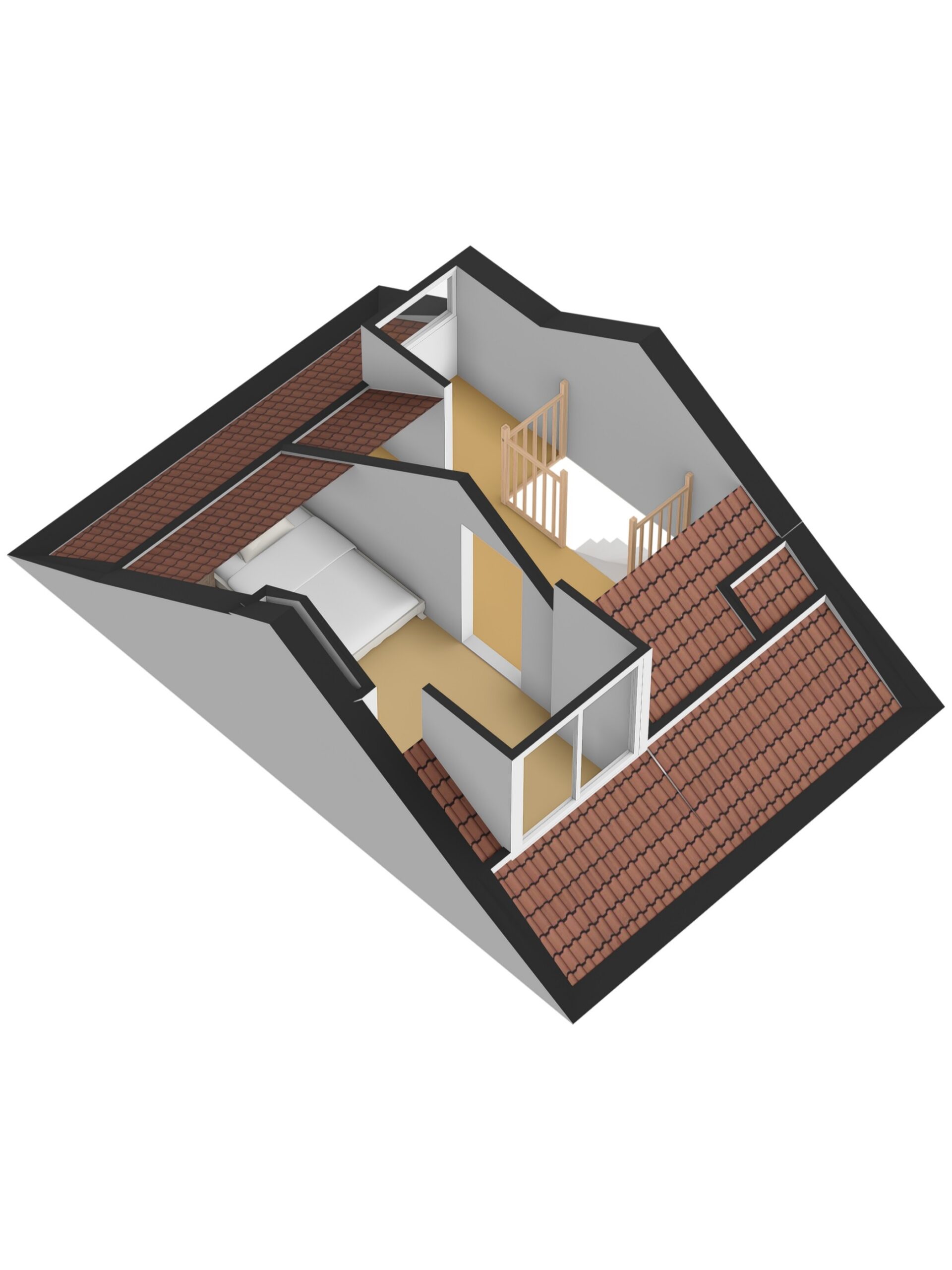 De tweede verdieping is bereikbaar via een vaste trap. Hier bevindt zich een extra kamer die goed dienst kan doen als vierde slaapkamer of werkruimte, aangevuld met praktische bergruimte.