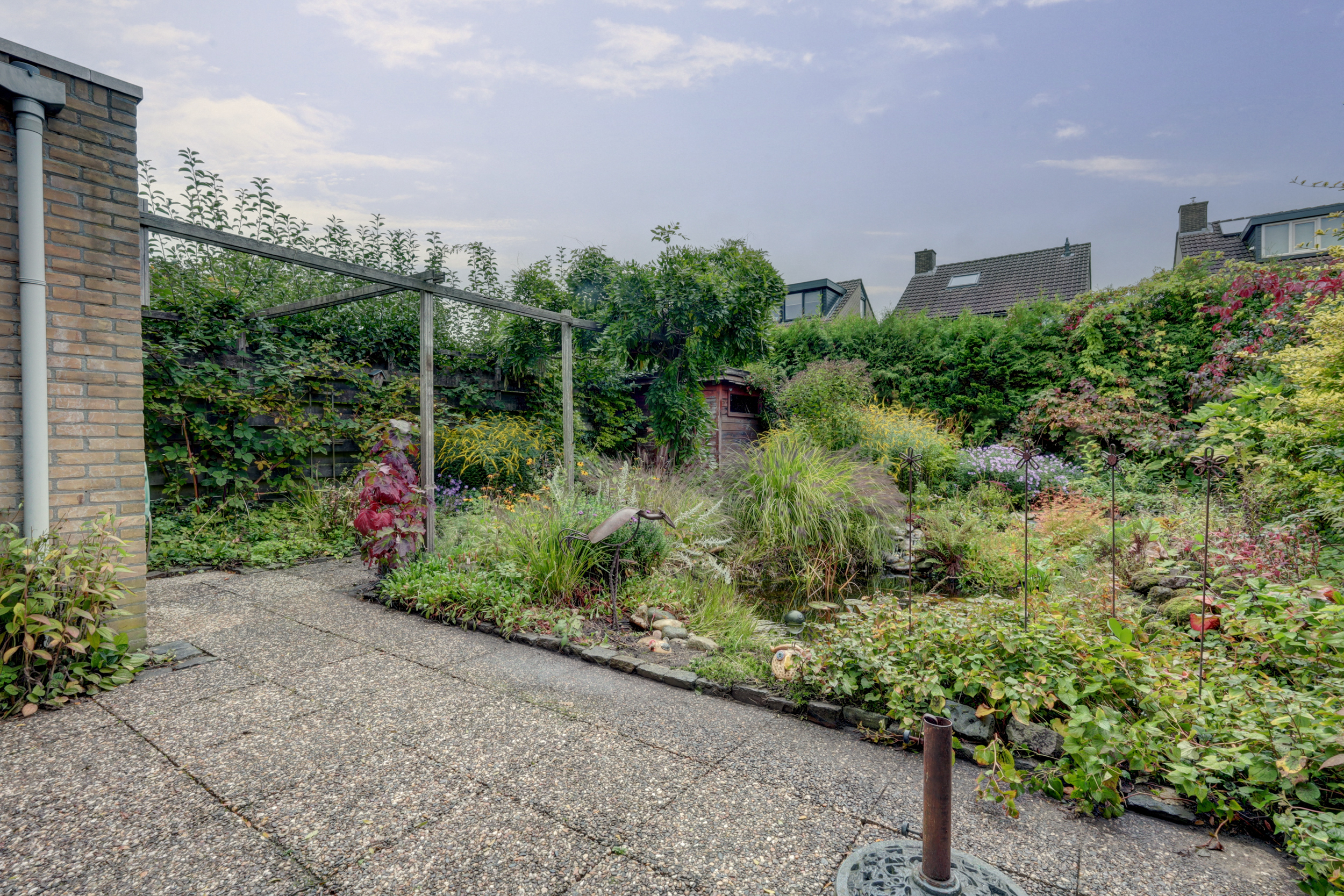 Voortuin met eigen oprit en carport; sfeervolle achtertuin met betegeld terras, diverse groenbegroeiing, gelegen op het oosten.