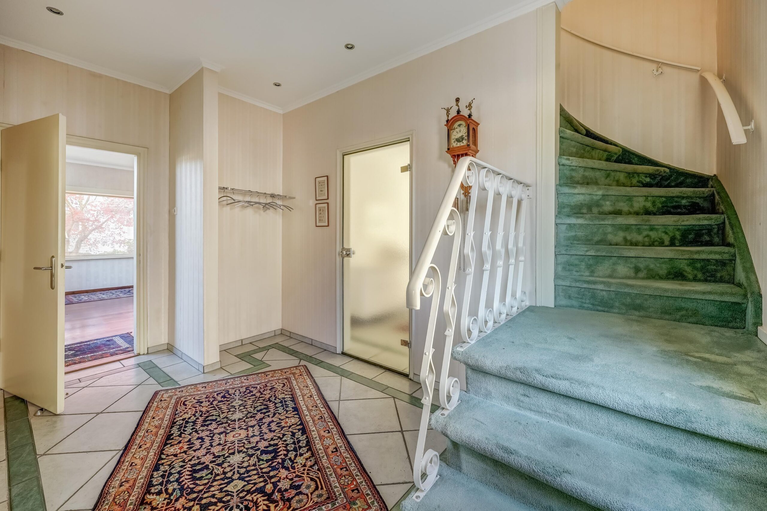 Via het tochtportaal stap je binnen in de ruime hal met garderobe en een fraaie trapopgang. De uitgebouwde woonkamer heeft een authentieke parketvloer, een originele schouw met gashaard en een praktische kastenwand. Aan de achterzijde bevindt zich de lichte eetkamer met schuifpui naar het zonneterras – een fijne plek waar binnen en buiten samenkomen. De royale woonkeuken sluit hier mooi op aan en beschikt over voldoende werk- en bergruimte, met toegang tot de provisiekelder. De zij-entree met ontvangsthal en het toilet met fontein maken deze verdieping compleet.