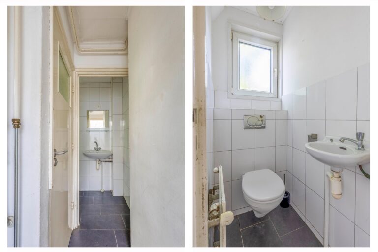 Via de entree stap je binnen in de hal die toegang geeft tot de verschillende vertrekken. De woonkamer biedt ruimte om een fijne zithoek en een grote eettafel te creëren. Door de breedte en de zichtlijnen richting de tuin voelt de ruimte licht en open aan. De begane grond beschikt daarnaast over een keukenruimte die naar wens kan worden vernieuwd, evenals een praktische kamer met wastafelmeubel en aansluiting voor de wasmachine. Een separaat toilet maakt het geheel compleet.