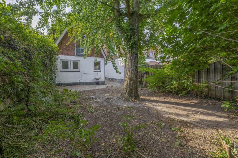 De achtertuin is een waar pluspunt: met een diepte van ruim 27 meter en een breedte van meer dan 6 meter biedt deze tuin voldoende buitenruimte. Hoewel de tuin in de huidige staat aandacht vraagt, kun je hier een prachtig groen domein creëren. Er is een vrijstaande houten berging aanwezig voor fietsen en tuingereedschap. Parkeren kan eenvoudig in de directe omgeving op de openbare weg.