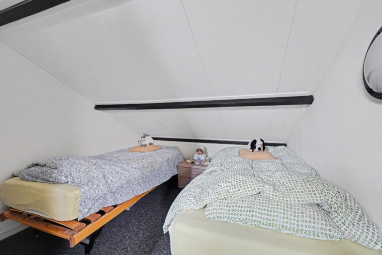Een vaste trap leidt naar de bovenste woonlaag. Hier bevindt zich een royale overloop met toegang tot een tweede slaapkamer. Tevens is hier een aparte wasruimte, ideaal voor het plaatsen van wasmachine en droger en extra bergruimte. Dankzij het dakraam is ook deze verdieping prettig licht.
