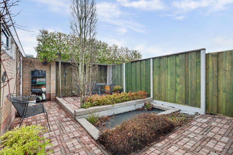 De woning beschikt over zowel een voor- als achtertuin, waarbij de achtertuin fraai is aangelegd en een fijne plek vormt om buiten te zitten. De tuin biedt voldoende privacy en is praktisch ingedeeld. Daarnaast is er een achterom aanwezig. Parkeren kan op eigen terrein, onder de carport, of in de vrijstaande stenen garage, die is voorzien van elektra en water.