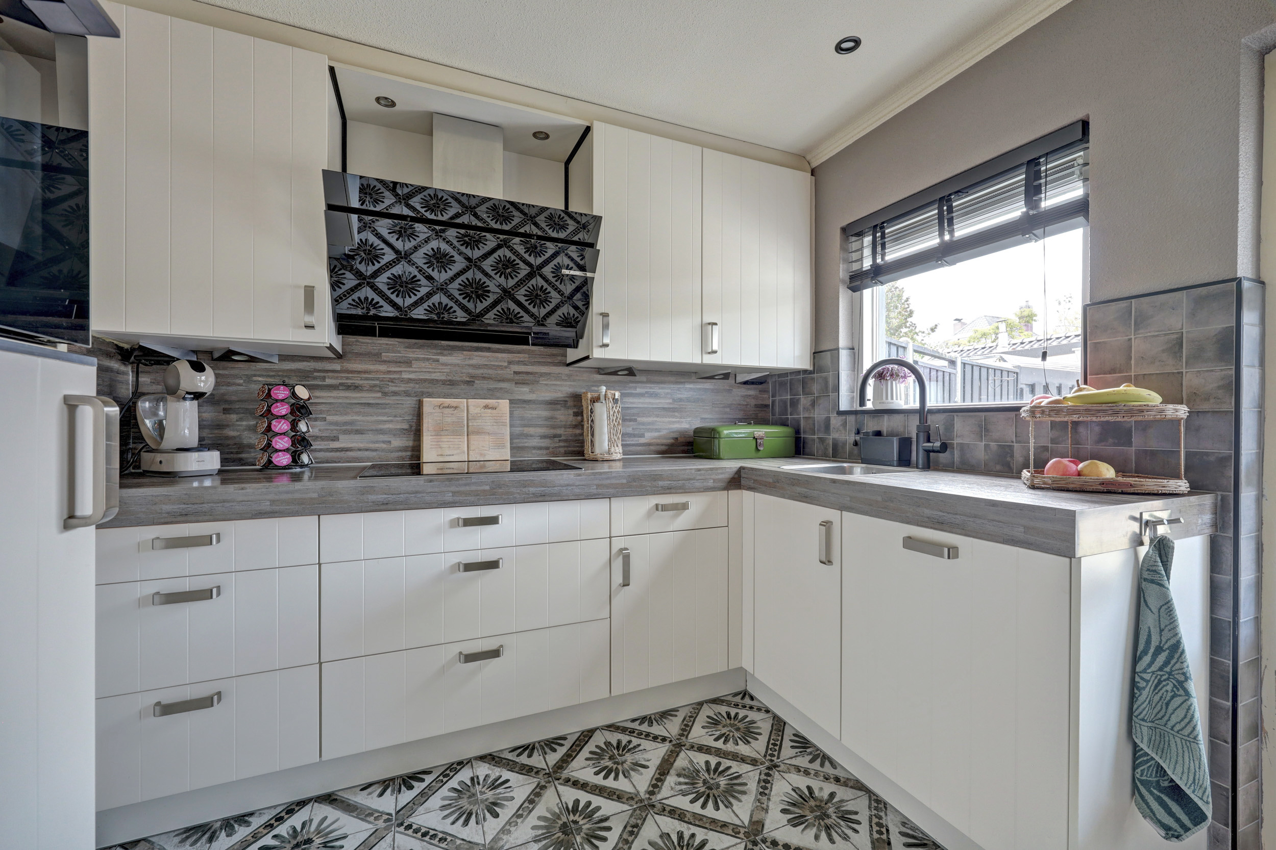 Stap deze sfeervolle woning binnen via de overdekte entree. In de hal vind je een garderobe, toilet met fontein (vernieuwd in 2023) en toegang tot de woonkamer. De begane grond biedt een afwisseling tussen gezelligheid en openheid. De sfeervolle woonkamer met eikenhouten parketvloer heeft meerdere fijne hoekjes, waaronder een zitkamer met schouw en een eetkamer met openslaande deuren naar het overdekte terras. De dichte keuken is praktisch ingericht en beschikt over alles wat je nodig hebt. De verbinding tussen binnen en buiten maakt dat je hier meteen je thuis voelt.