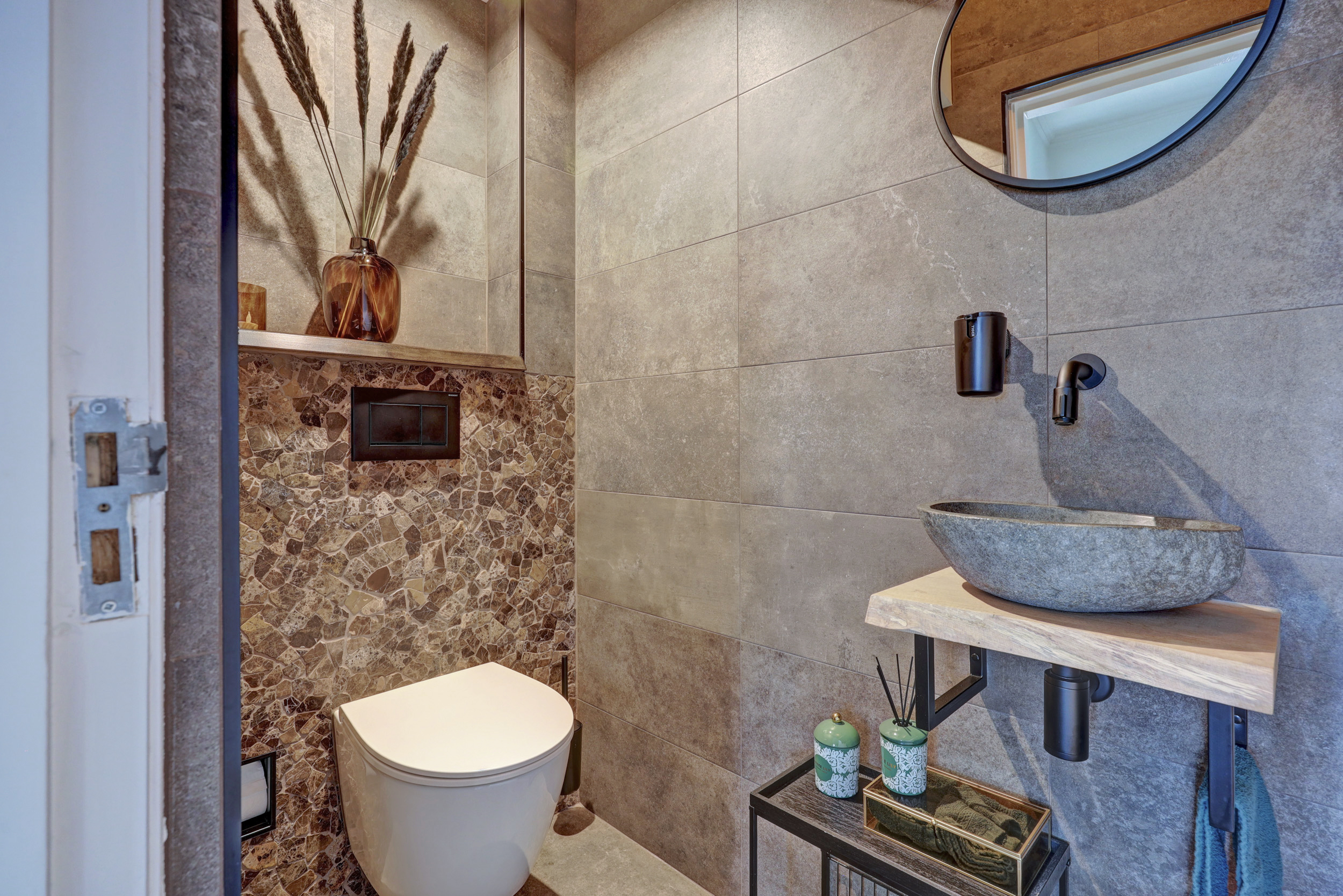 Op de eerste verdieping zorgen twee royale slaapkamers en een zeer complete badkamer voor een comfortabele leefomgeving. De badkamer is luxe afgewerkt met een vrijstaand ligbad, inloopdouche, dubbele wastafel met meubel en een tweede toilet. Ook is een aparte wasruimte aanwezig, wat de verdieping heel praktisch maakt.