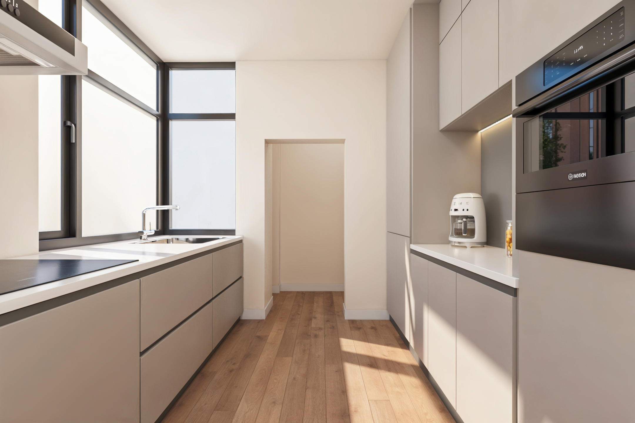 De tweede etage biedt een ultieme ruimte om je terug te trekken. De overloop leidt naar twee ruime slaapkamers. De master bedroom is indrukwekkend, met een stijlvolle walk-in-closet die aanvoelt als pure luxe. De badkamer op deze verdieping is volledig modern ingericht en straalt wellness uit. Denk aan een grote inloopdouche, een elegante dubbele wastafel en een strak afgewerkt toilet. Extra slaapkamers zijn hier bovendien eenvoudig te realiseren, mocht dat nodig zijn.