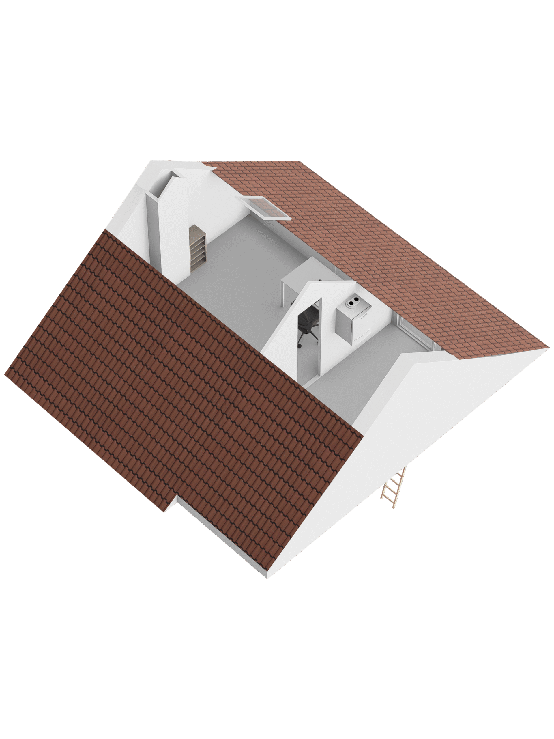 De zolderverdieping, te bereiken via een vlizotrap, is voorzien van een dakraam en biedt potentieel voor een extra (slaap)kamer.