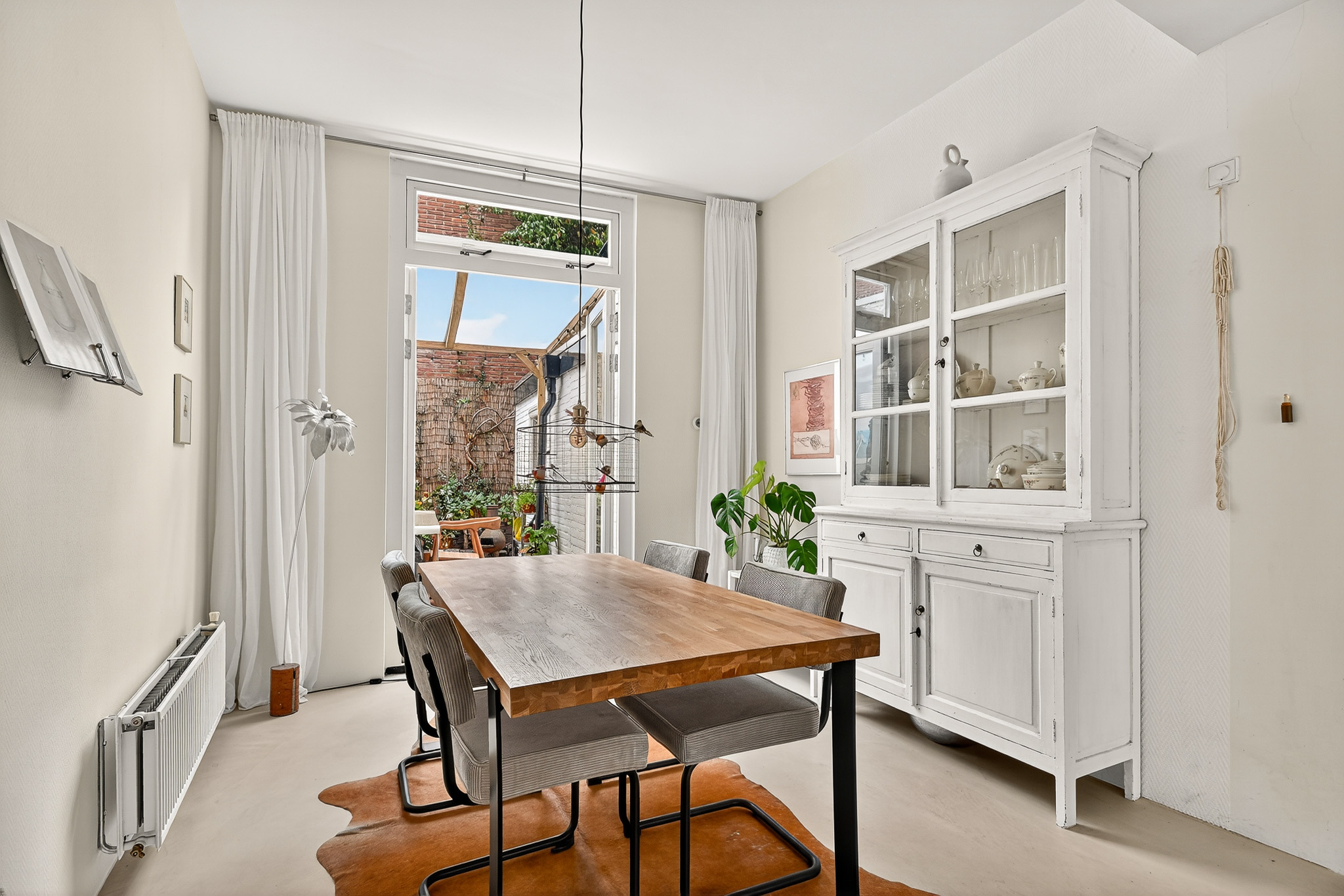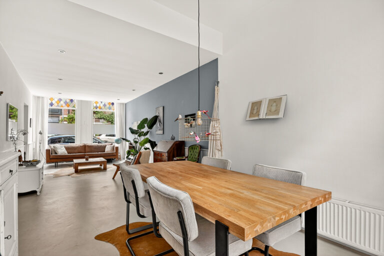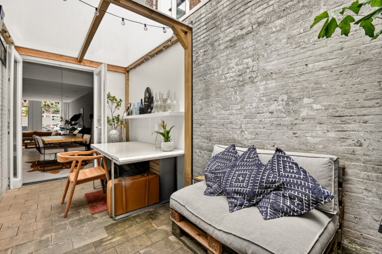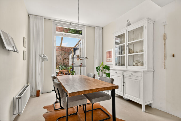 Deze sfeervolle benedenwoning is met liefde onderhouden en voelt direct warm en ruim aan. De woonkamer is maar liefst 9,5 meter diep en dankzij de grote ramen heerlijk licht. Via openslaande deuren loop je zo de zonnige patio op het zuiden in, perfect voor een kop koffie in de ochtend of een borrel in de namiddagzon. Het is zelfs zo een fijne plek dat de huidige eigenaar er deels een overkapping heeft laten plaatsen en daar een werkplek heeft gecreëerd.