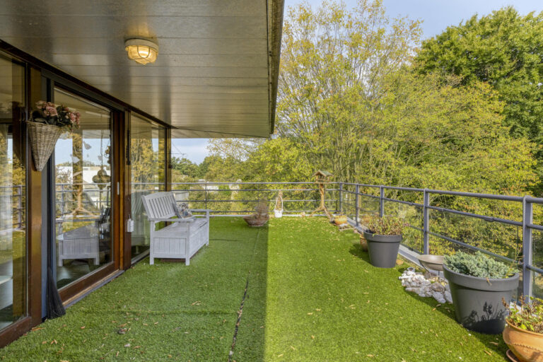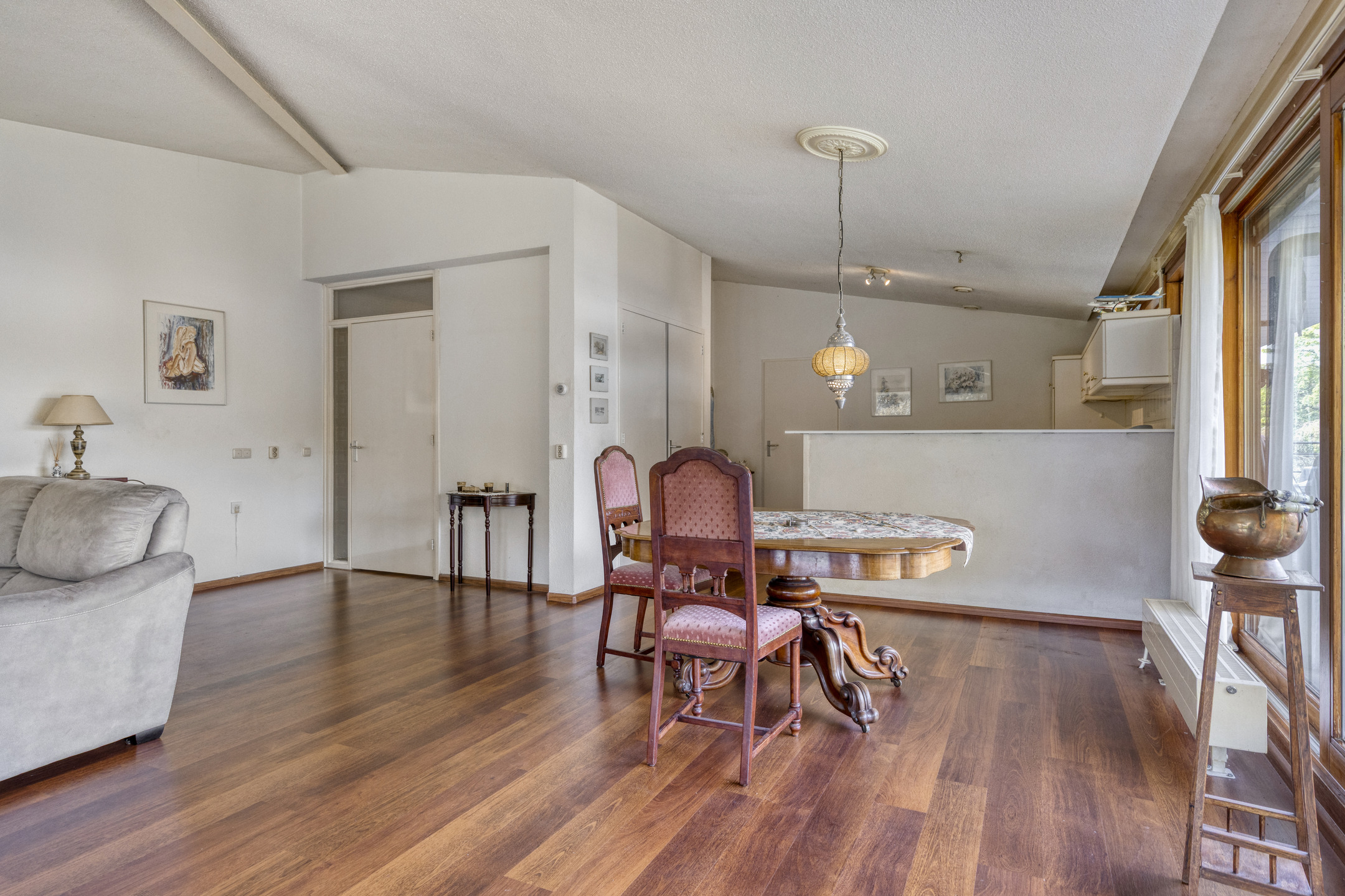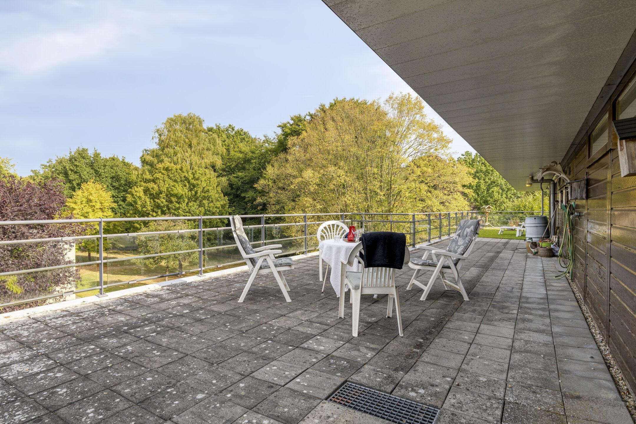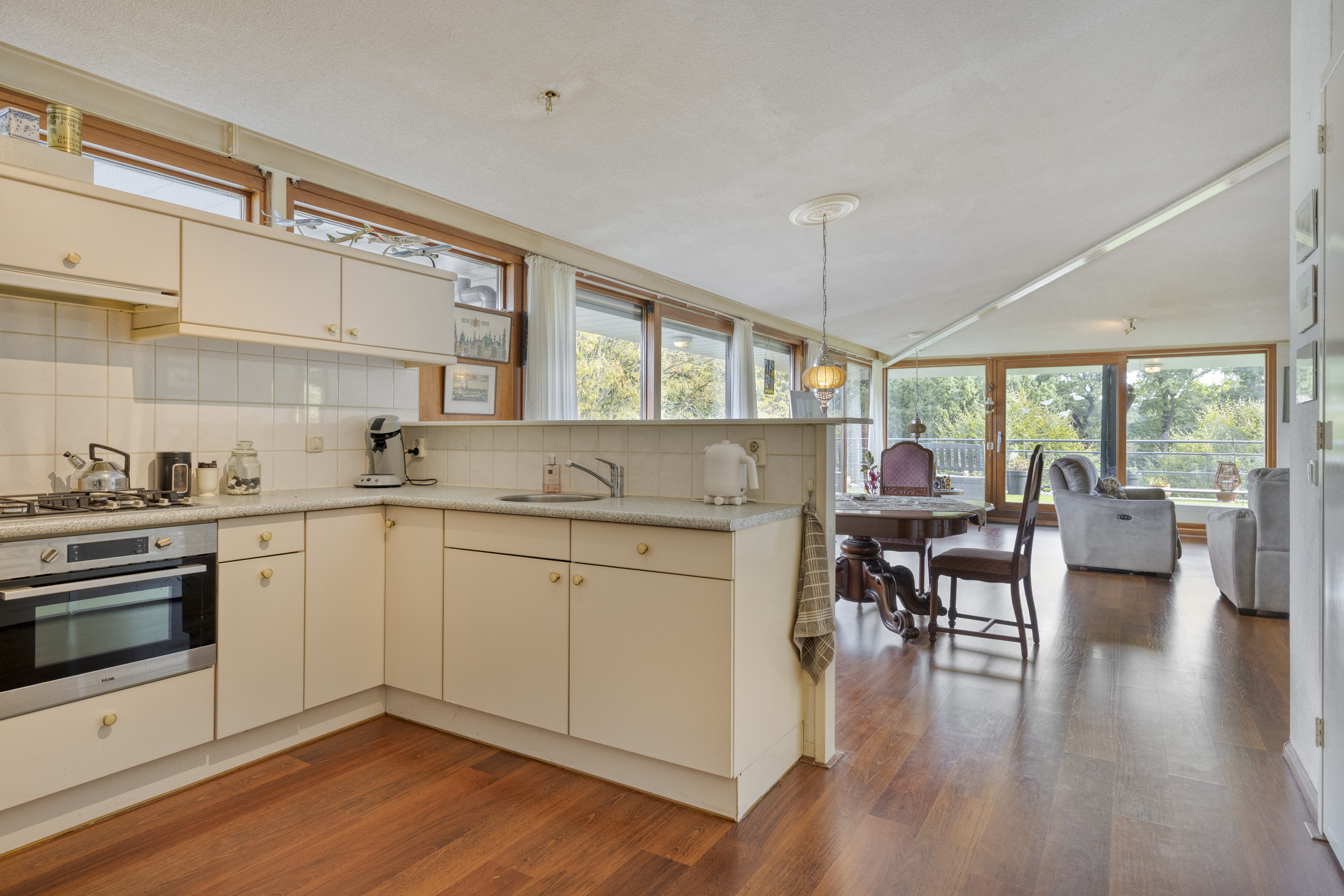 De architect heeft in zijn ontwerp elk detail zorgvuldig overwogen, met respect voor het gebouw en de functionaliteit die hoort bij riant wonen middels de grote raampartijen met een 180 graden uitzicht en een hoog plafond dat schuin oploopt tot in de nok. Een optimaal gevoel van ruimtebeleving. De living is een sfeervolle en luxueuze leefruimte waar meerdere mogelijkheden zijn betreft de inrichting. Op de plek van de huidige keukenopstelling kunt u geheel naar eigen wens uw nieuwe droomkeuken realiseren. Vanaf het dakterras heeft u aan de voorzijde zicht op het groen van de hertenweide waar u heerlijk kunt genieten in volledige privacy.