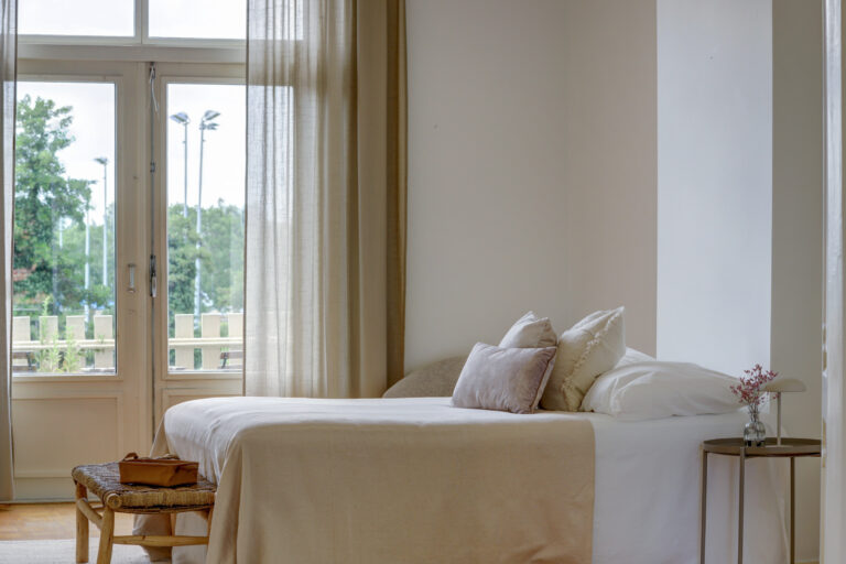 Op de eerste verdieping bevinden zich drie ruime slaapkamers, allemaal met een eigen balkon. De torenkamer – misschien wel de mooiste van het huis – is perfect als werkplek of voor een kind dat net iets anders wil.