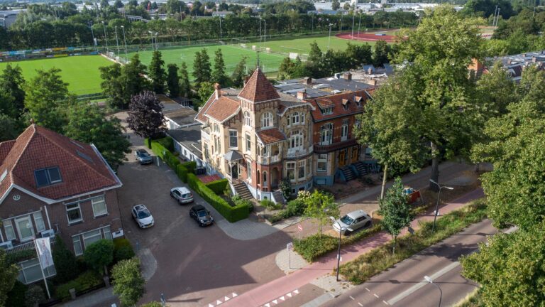 Stel je voor: je stapt ’s ochtends via de monumentale buitentrap naar buiten, koffie in de hand, kinderen op weg naar school, de stad nog rustig. Je woont in een huis waar geschiedenis voelbaar is, maar waar je ook gewoon leeft. Met vrienden aan een lange tafel, met tekeningen op de vloer, muziek uit de keuken en ruimte om te doen wat je wilt. Deze statige stadsvilla uit 1905 is zo’n plek. Vol karakter, sfeer en mogelijkheden. Gebouwd in rijke jugendstil, herkenbaar aan het opvallende torentje. Een huis dat in het oog springt, maar vooral aanvoelt als een warm thuis. Met een woonoppervlak van ca. 545 m², verdeeld over vier volwaardige verdiepingen, is dit een ideale gezinswoning met ruimte voor alles wat je maar kunt bedenken: een atelier, kantoor, studio, praktijk, gastenverblijf – of gewoon: heel veel leefruimte.